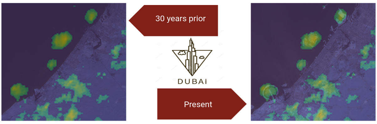 In order to create the most beneficial tool, supervised and self-supervised methods were explored by GA-CCRi analysts. Under the supervised methods, different network architectures were identified and trained on EarthNet2021 and EuroSAT data. Triplet loss was added to the architecture in order to pursue self-supervised methods. Overall, the tool was capable of detecting landscape changes on LandSAT imagery boasting a 30 meter ground sampling distance as seen in the example below.