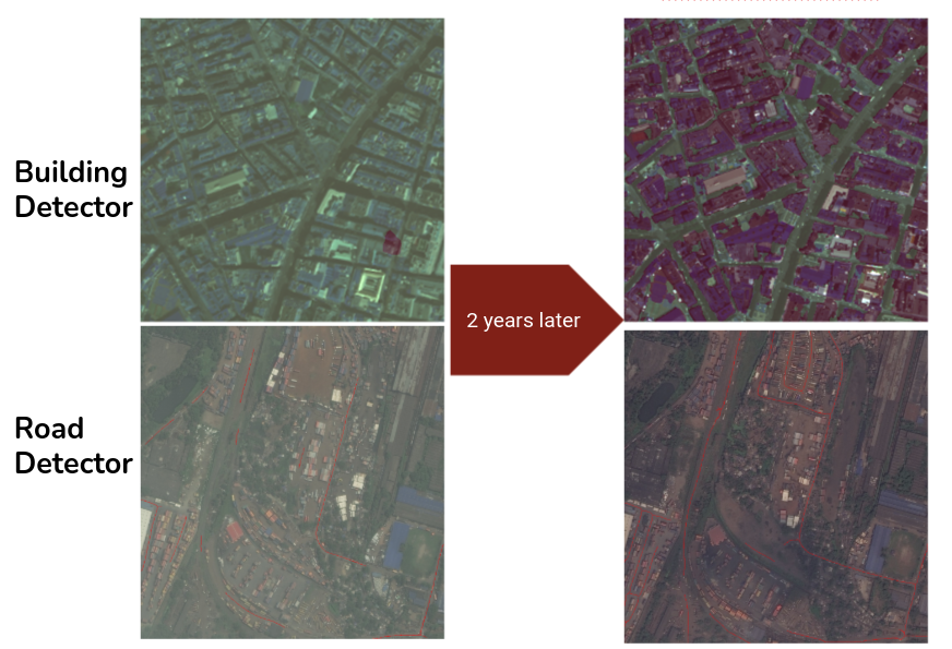 One of the first things that needs to be done is retraining. After acquiring a high resolution dataset, the road and building detectors can be retrained to more accurately predict where buildings and roads are in images of different ground sampling distances. Since most of the data will be retrieved from MAXAR, it is important to include a large set of 30 cm per pixel imagery. Additionally, this tool can be automated to work on live imagery quickly comparing change over several different time periods succesfully predicting where urbanization is occuring.